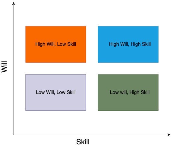 Skill will matrix evaluates team members based on their skills and motivation. It categorizes individuals into four quadrants: