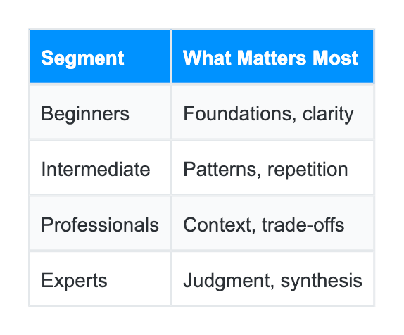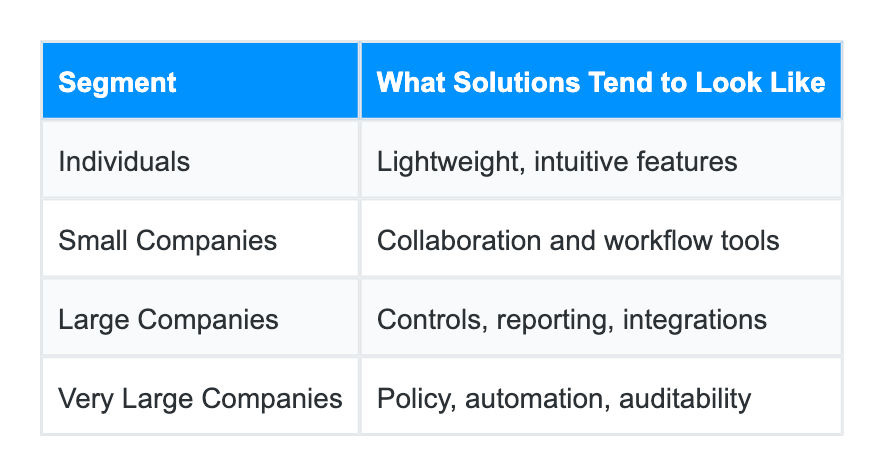 This framing alone explains why roadmap debates often feel circular: people are optimizing for different segments without saying so.